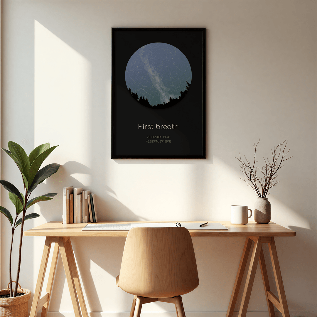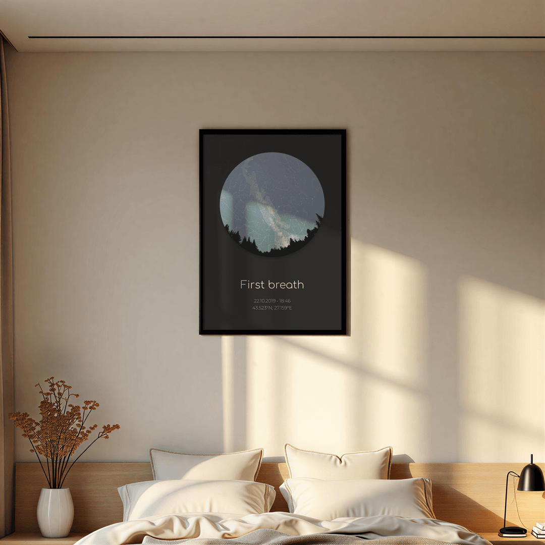 Звездната карта показва как е изглеждало небето в избрания от вас специален момент - първата среща, рожден ден, годишнина, сватба или друг важен повод.