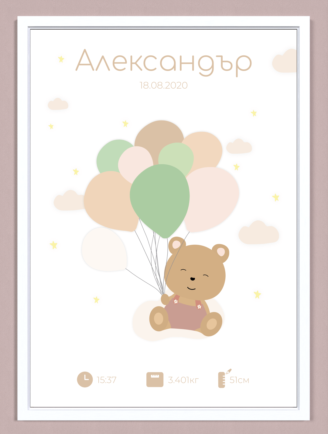 Персонализация с име, дата, час, ръст и тегло на бебето