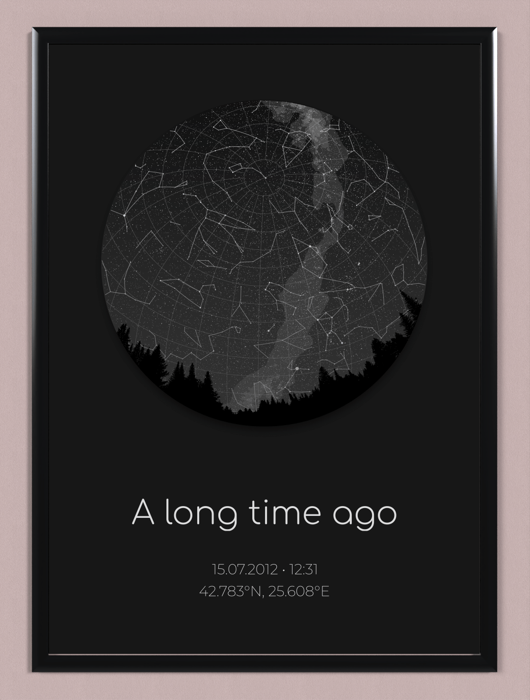 Звездната карта изобразява звездното небе в моментa на специално събитие. Това може да бъде първата ви среща, годишнина, рожден ден, сватба и всеки друг важен момент в живота ви!