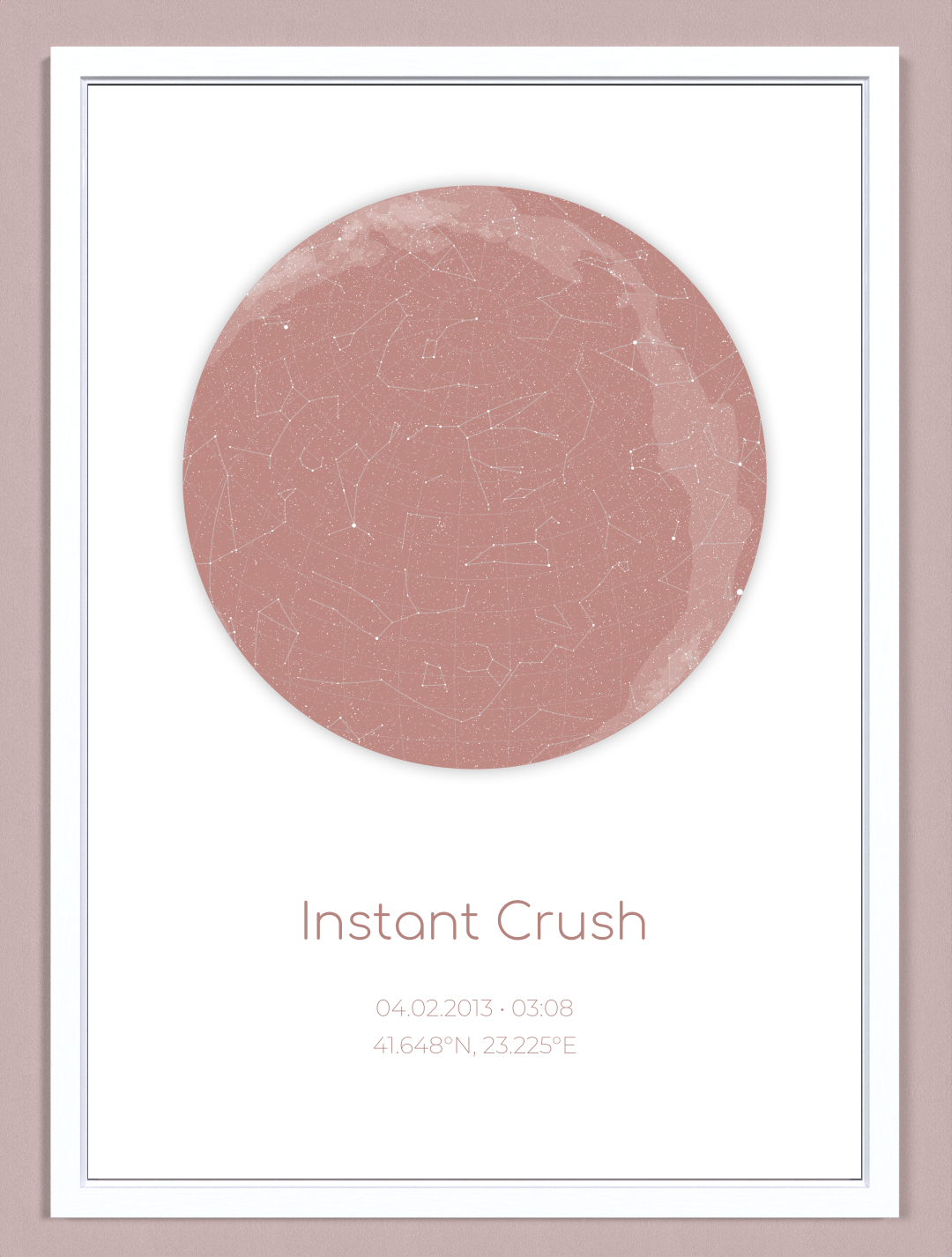 Звездната карта показва как е изглеждало небето в избрания от вас специален момент - първата среща, рожден ден, годишнина, сватба или друг важен повод.